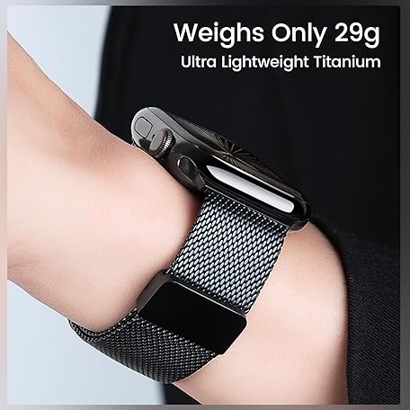 Sản phẩm Titanium Milanese Loop Band Compatible with Apple Watch Ultra 3 2/Ultra 49mm, Series 10/9/8/7/6/5/4/3/SE 44mm 45mm 46mm, Lightweight Magnetic Clasp Mesh Strap for Men and Women đang được bán với giá ưu đãi là $108.9891 tại nước Mỹ.