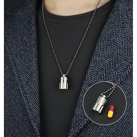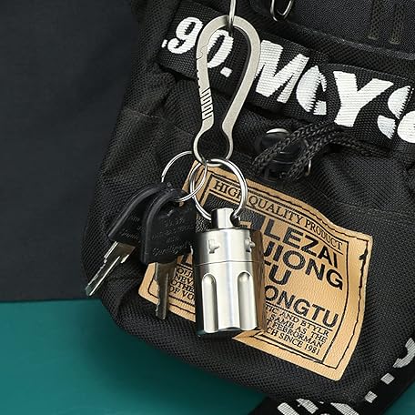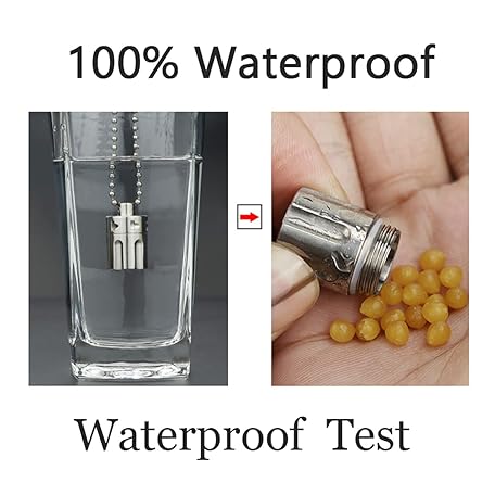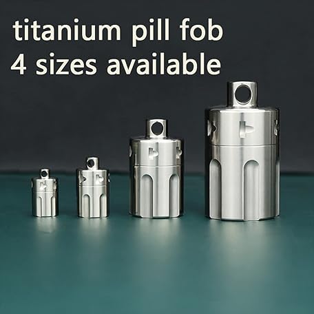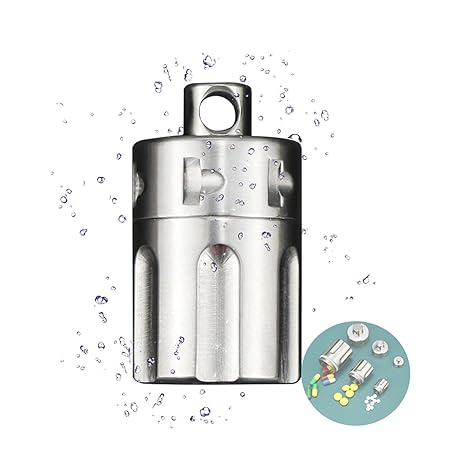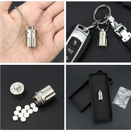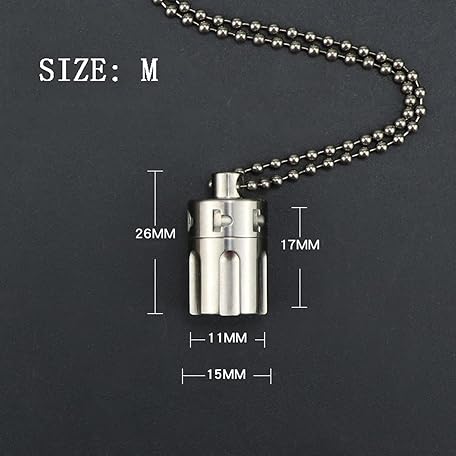 Titanium Pill Fob Necklace, Mini Waterproof Pill Case, Outdoor EDC Pill Bottle, Emergency Aspirin Nitro Holder, Survival Pill Container Capsule for Travel Purse or Pocket