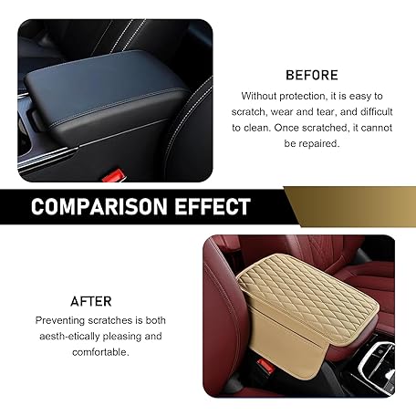 Titgoes Car Armrest Box Pad, Wear-resistant & Scratch-proof Leather Center Console Cover, Storage-enabled Console Pad, Universal for Sedans SUVs Trucks (Beige)