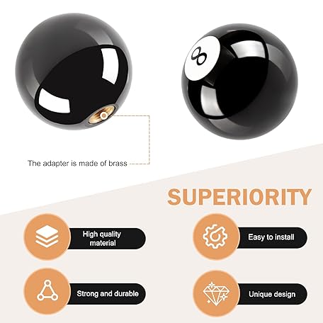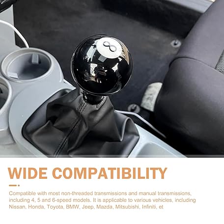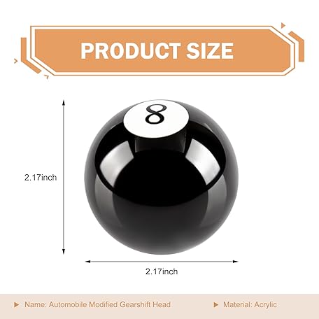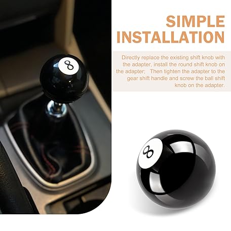 Titgoes Round Ball Shift Knob, 8 Ball Billiard Gear Shifter, Manual Acrylic Stick Shift Knob with 3 Adapters, Funny Car Accessories Suitable for Automatic Vehicles (Black)