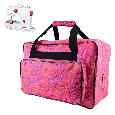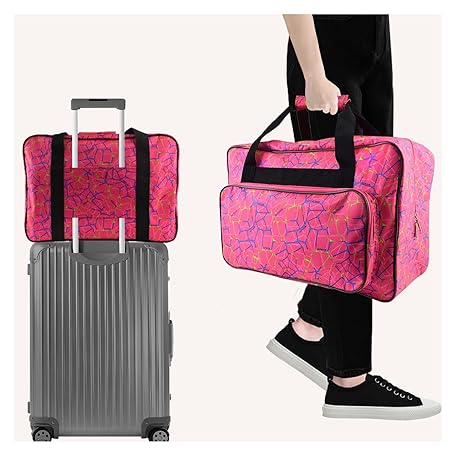 Thông tin sản phẩm TLBTEK Rose Red Sewing Machine Carrying Case,Universal Canvas Carry Tote Bag,Portable Padded Storage Dust Cover with Pockets for Sewing Machine