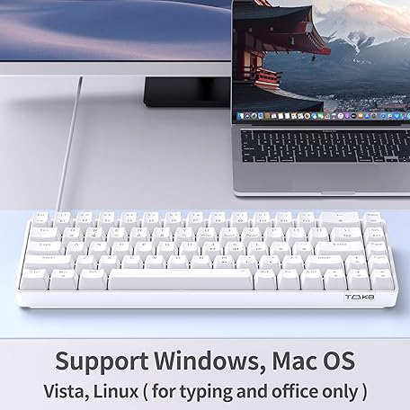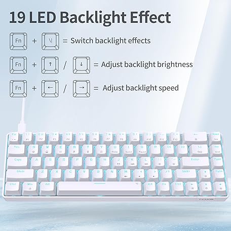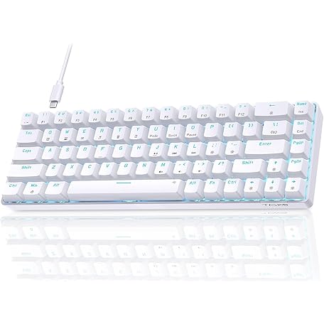 Thông tin sản phẩm TMKB T68SE 60% Mechanical Gaming Keyboard – Ultra-Compact 68 Keys Wired Keyboard with Blue Switches, LED Backlit, Dedicated Arrow & Control Keys – White – for Windows PC/Laptop/Gamers/Typists