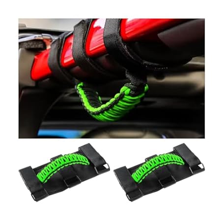 • TNAIYH 2PCS Car Roll Bar Grab Handle Set, 3 Strap Oxford Cloth Vehicle Grab Handles with Metal Buckles, Automotive Replacement Hand Grip Strap, Compatible with Wrangler TJ YJ JK (Green)