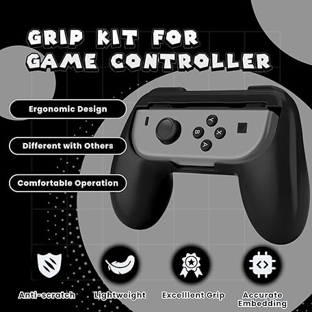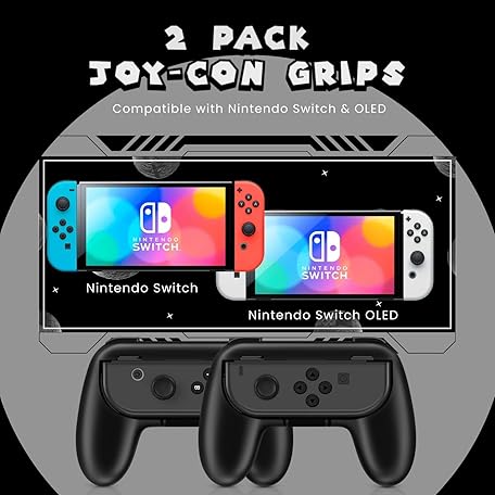 TNP Joy-Con Grip for Nintendo Switch/OLED (2 Pack Black) Comfortable Grip Wear Resistant Joy-Con Handle Game Controller Kit Accessory for Nintendo Switch, Switch OLED