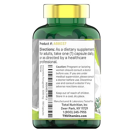 Sản phẩm tnvitamins Fenugreek Capsules: 3200 mg - 180 Capsules | Fenugreek Supplement for Men & Women | Fenugreek Seed Powder Extract | Non-GMO | Made in The USA! đang được bán với giá ưu đãi là $16.3391 tại nước Mỹ.