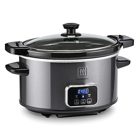 Toastmaster 4-Quart Digital Slow Cooker with Locking Lid - Food Warmer for Dip, Soups, Parties, Meal Preparation & More - Graphite