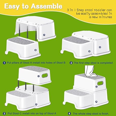 Thông tin sản phẩm Toddler Step Stool,2 Step Stools for Kids with Anti-Slip Surface and Rubber Bottom, Kids Step Stool Poop Stool for Toilet Potty Training, Bathroom, Kitchen(Include 2 Ducks)