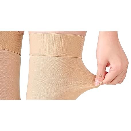 TOFLY® Thigh High Compression Stockings for Women & Men (Pair), Open Toe, Opaque 20-30 mmHg Graduated Compression Hose, Medical Compression Stockings for Varicose Veins, Edema, DVT, Travel,Beige L