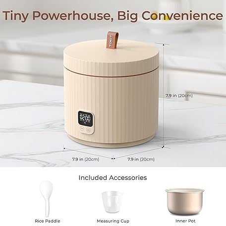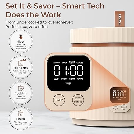 Thông tin sản phẩm TOKIT Rice Cooker Small 3 Cup Uncooked /6 Cup Cooked, Modern Multifunctional Mini Rice Cooker with Display Touch Button for 1-3 People Ceramic Coated Non-Stick Pot 8 Cook Functions - Cooking & Warmer