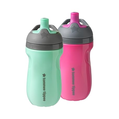 Thông tin sản phẩm Tommee Tippee Insulated 9oz Sporty Spout Toddler Water Bottle, No Spill, Sippy Cups for Toddlers 1-3, Two-Piece Valve Helps Stop Spills, Hot Pink & Mint, BPA Free, Pack of 2