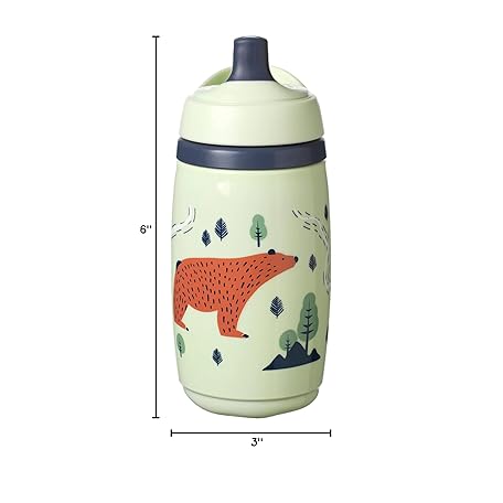 Thông tin sản phẩm Tommee Tippee Insulated 9oz Sporty Toddler Water Bottle, No Spill Sippy Cups for Toddlers 1-3, INTELLIVALVE 100% Leak-Proof, Shake-Proof Antimicrobial Technology, BPA Free, Animal Print, Pack of 1