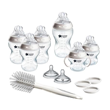 Thông tin sản phẩm Tommee Tippee Natural Start 12 Piece BPA Free Bottle Set, Includes 2 x 5 oz, 3 x 9 oz, 1 x 11 oz Bottles, Newborn 0+ Months, Slow, Medium & Thicker Flow Breast-Like Nipples, Cleaning Brush, Clear