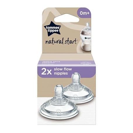 Tommee Tippee Natural Start Baby Bottle Nipples, Slow Flow, 0m+, Pack of 4 Soft Silicone Breast-Like Bottle Nipples for a Natural Latch with Anti-Colic Valve