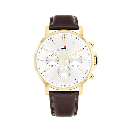 Tommy Hilfiger Men's Multifunction Quartz Watch – Stainless Steel Case, Leather Strap, Classic Everyday Style Timepiece - Gift for Him