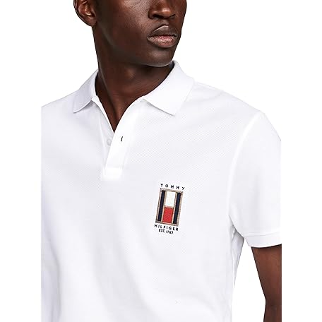 Tommy Hilfiger Mens Short Sleeve Casual Polo Shirts in Regular Fit with Stretch and Vertical Logo Designs