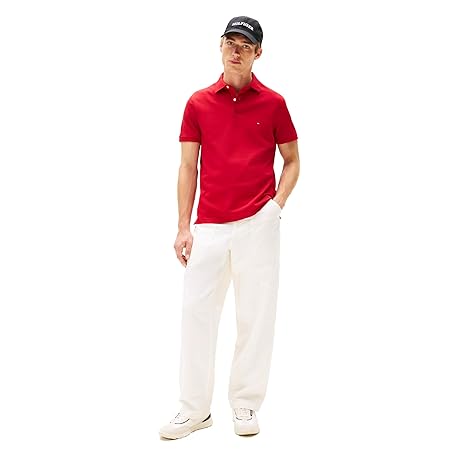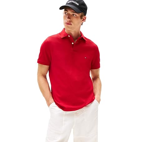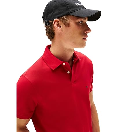 Tommy Hilfiger Mens Short Sleeve Polo Shirts in Regular Fit with Stretch and Organic Pique Cotton
