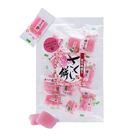 TOMOSAN Japanese Sakura Mochi Candy, Traditional Cherry Blossom Rice Cakes, Soft & Chewy, Individually Wrapped, 180g / 6.35oz