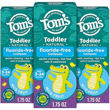 Thông tin sản phẩm Tom's of Maine Fluoride-Free Toddler Training Toothpaste, Mild Fruit, 1.75 oz. 3-Pack (Packaging May Vary)
