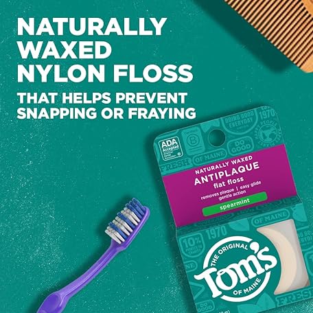 Thông tin sản phẩm Tom's of Maine Naturally Waxed Antiplaque Flat Dental Floss, Spearmint, 32 Yards 6-Pack (Packaging May Vary)