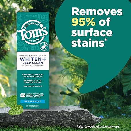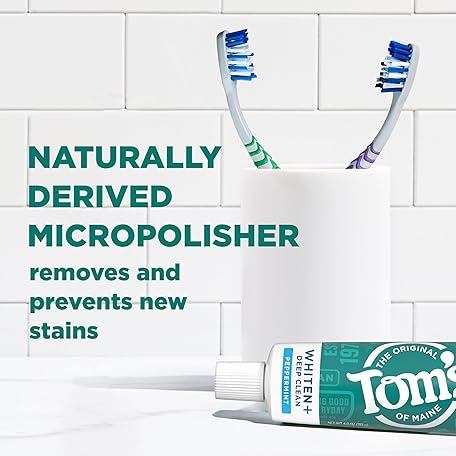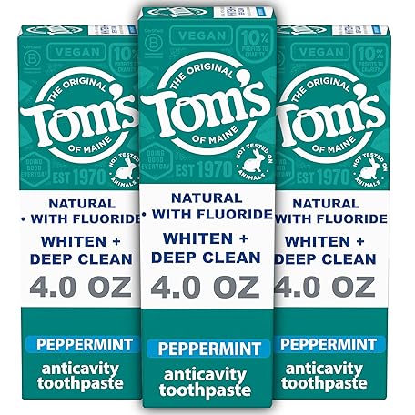 Tom's of Maine Whiten Plus Deep Clean Whitening Toothpaste, Natural Whitening Toothpaste with Plant-Based Cleansers, Enamel Safe, Whitens Without Causing Sensitivity, Peppermint, 4.0 oz (Pack of 3)