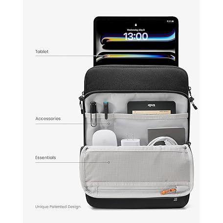 Thông tin sản phẩm tomtoc DefenderACE 13 Inch iPad Case Sleeve Bag for iPad Pro M4, M2&M1 & 2025 13 Inch iPad Air M3/M2 2024, 360 Protection Spill-Water Resistant Tablet Sleeve Carrying Case