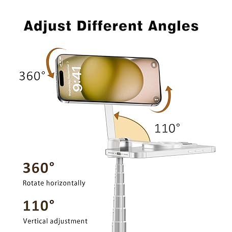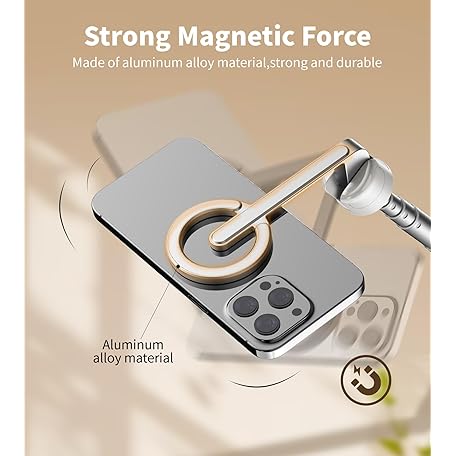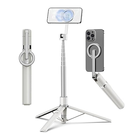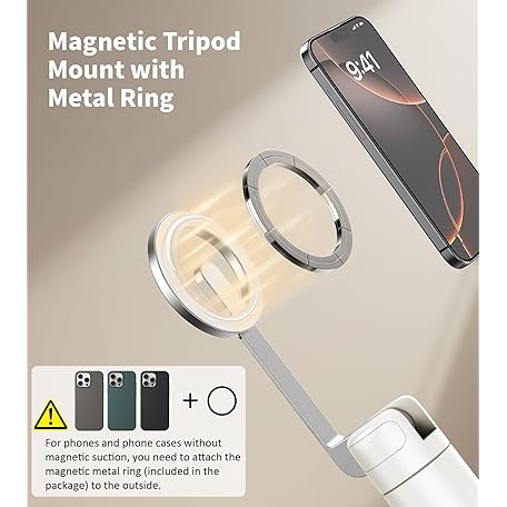 TONEOF 68" Magnetic Selfie Stick Tripod with Aluminum Strong Magnetic Holder for Magsafe, 360° Rotatable Travel Phone Tripod Stand with Metal Ring & Rechargeable Remote for iPhone/Android(Beige Gray)