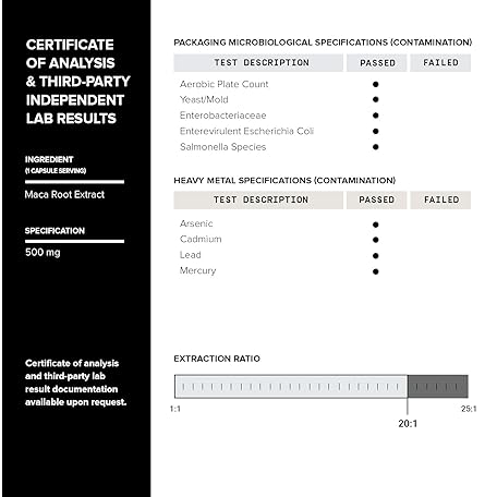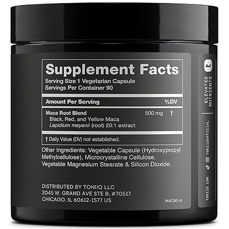 Thông tin sản phẩm Toniiq Maca Root - Ultra High Potency 20:1 Extract - Black, Red and Yellow Maca Complex - Single Origin, Wildcrafted & Highly Concentrated - Third-Party Lab Tested - 90 Capsules
