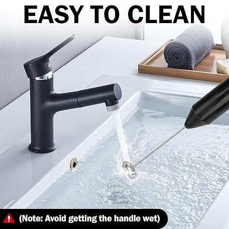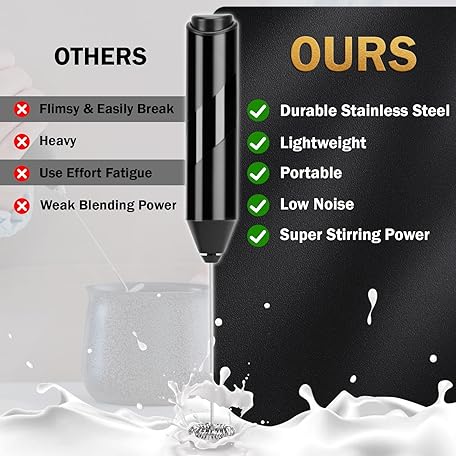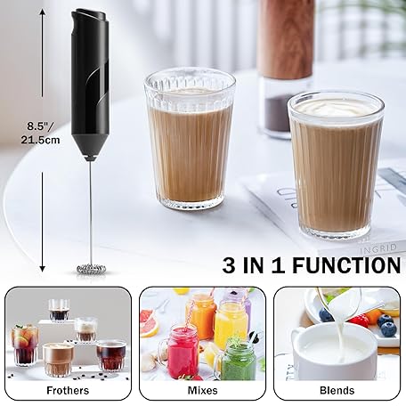 TonJin Milk Frother Wand for Coffee, New Upgraded Battery Powered (Not Included) Electric Handheld Drink Mixer for Matcha, Latte, Cappuccino, Frappe, Chocolate,304 Stainless Steel Whisk Black