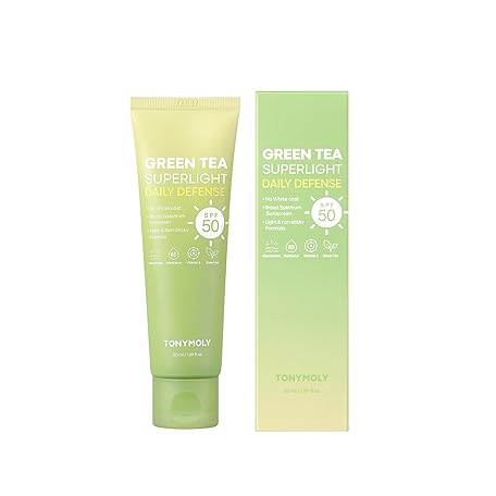 TONYMOLY Green Tea Korean Sunscreen SPF 50 – Non-Greasy Broad Spectrum Face Sunscreen with Niacinamide, Panthenol & Hyaluronic Acid, Travel Size 50ml