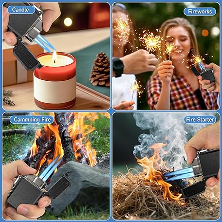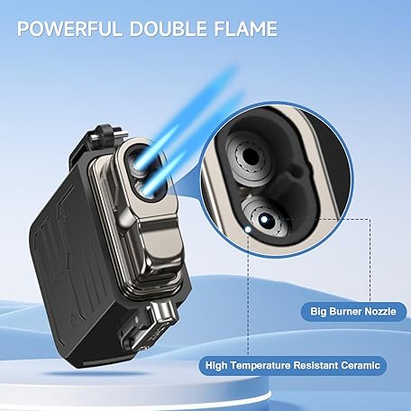 TOPAKY Torch Lighter, Waterproof Windproof Dual Flame Butane Lighter, Refillable Mini Gas Torch Lighter for Candle Fireworks Camping Hiking Tactical Gear (Not Prefilled)