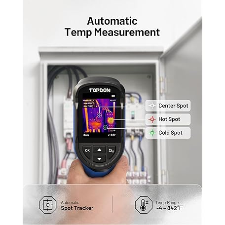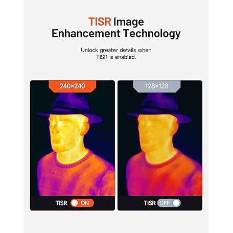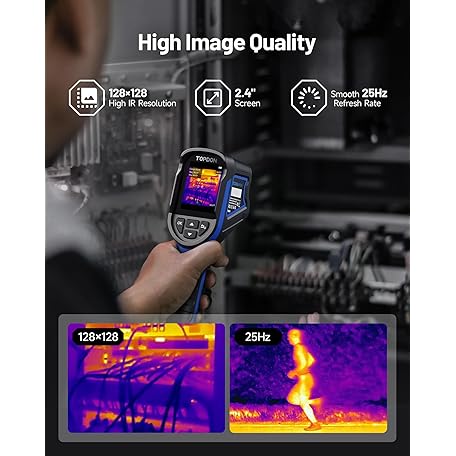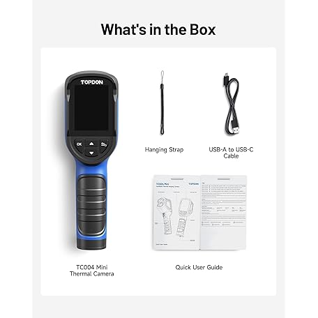 Thông tin sản phẩm TOPDON TC004 Mini Handheld Thermal Imaging Camera, 240 x 240 TISR Resolution, -4°F to 842°F, 15-Hour Battery Life, 128 x 128 IR Resolution, 25Hz Infrared Camera, High/Low Temp Alerts, Auto Shutdown