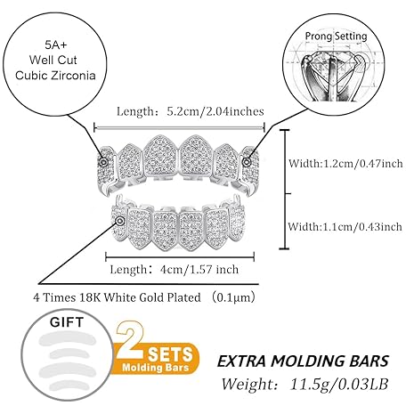 Sản phẩm TOPGRILLZ Grillz Vampire Teeth - Grills for Your Teeth Grillz for Women Men 18K Gold-Plated Iced out CZ Fangs Hip Hop Rapper Costume Accessory Cosplay Extra Molding Bars đang được bán với giá ưu đãi là $19.6091 tại nước Mỹ.