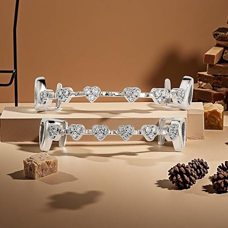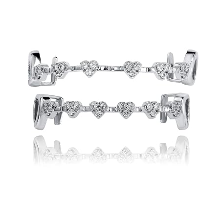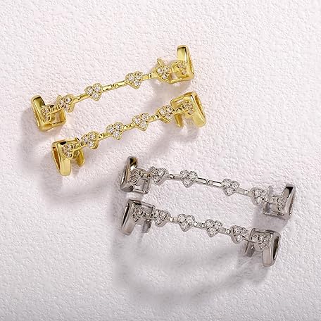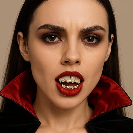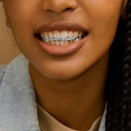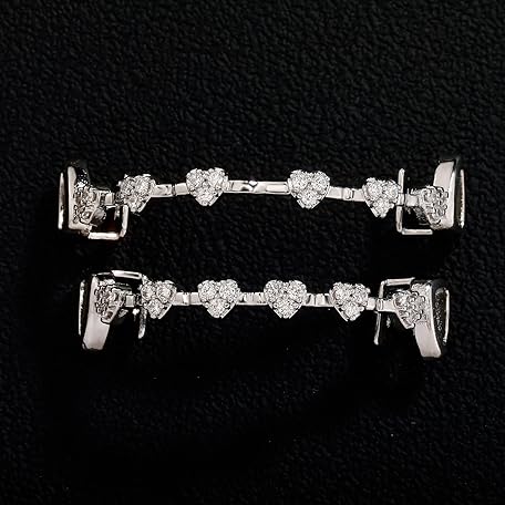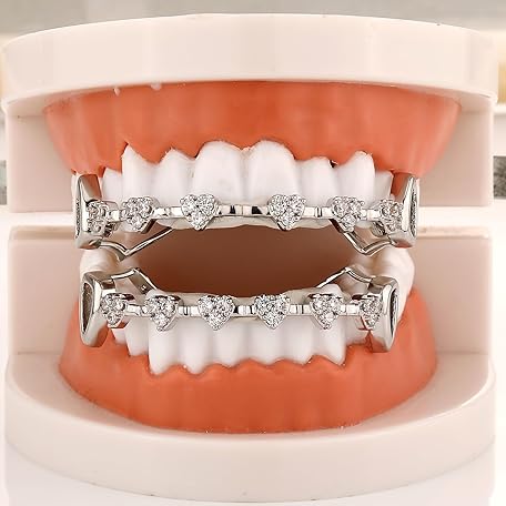 TOPGRILLZ Heart Vampire Teeth Grillz for Women – Gold Tooth Cap with Iced out Faux Diamond Design, Fake Fangs Grills for Your Teeth, Cosplay Tooth Jewelry