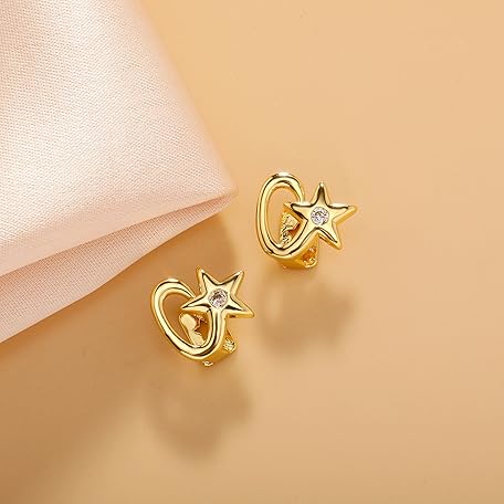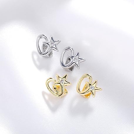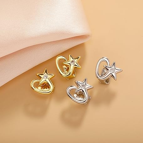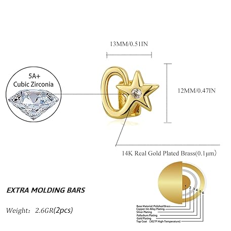 TOPGRILLZ Star Grillz Gold Tooth Cap - Grills for Your Teeth Grillz Teeth for Men 2pcs 14K Gold Plated Iced Single Grillz for Women Rapper Costume