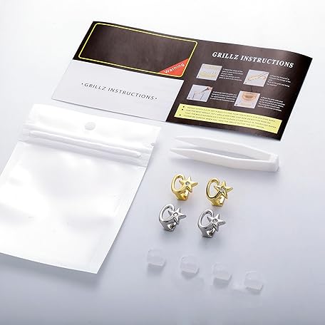 • TOPGRILLZ Star Grillz Gold Tooth Cap - Grills for Your Teeth Grillz Teeth for Men 2pcs 14K Gold Plated Iced Single Grillz for Women Rapper Costume