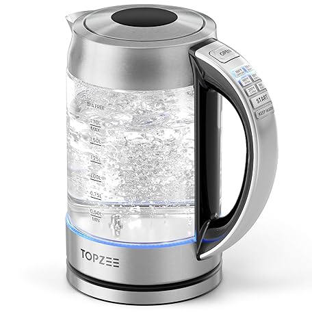 topzee 1.7L Glass Electric Kettle for Coffee & Tea, Hot Water Boiler with 6 Preset Temperatures, Keep Warm and Memory Function, Auto Shut-off & Dry Boil Protection, BPA Free, Rapid Boil, 1500W, Silver