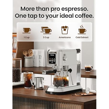 Thông tin sản phẩm topzee Espresso Machine 20 Bar, Compact Coffee Maker with Milk Frother & Cold Brew Function, 52oz Removable Water Tank, Stainless Steel Cappuccino, Latte Maker, Silver