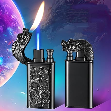 Torch Lighter, Relief Dragon Design Magic Dual Flame Lighter with Adjusting Flame Tool, Creative Windproof Lighter, Cool Jet Flame Butane Lighter, Refillable Butane Lighter Gifts for Outdoor Indoor