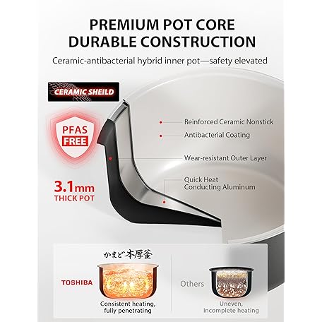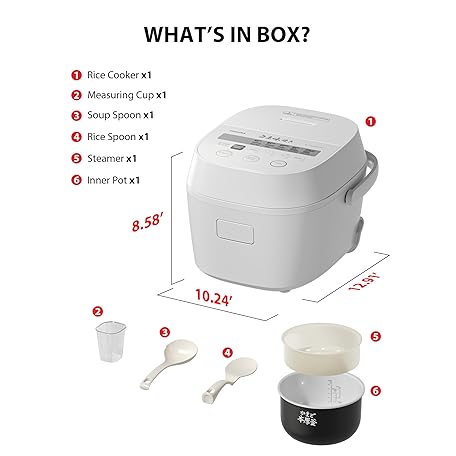 Thông tin sản phẩm TOSHIBA OriginTaste Rice Cooker 5.5-Cup Uncooked, Fuzzy Logic, 15-in-1 Functions, Digital Display, Delay Timer, Keep Warm, Nonstick Inner Pot, White