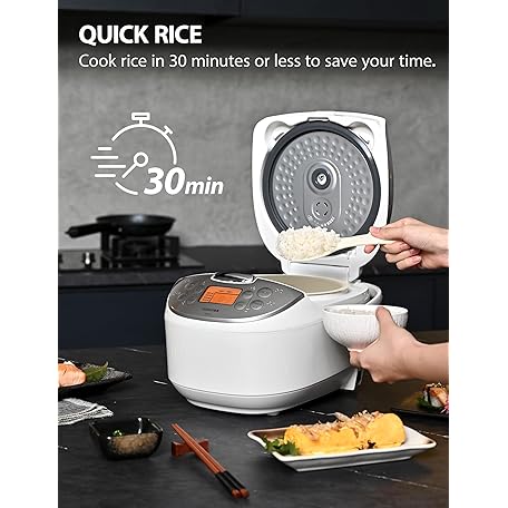 Thông tin sản phẩm Toshiba Rice Cooker 6 Cup Uncooked – Japanese Rice Cooker with Fuzzy Logic Technology, 7 Cooking Functions, Digital Display, 2 Delay Timers and Auto Keep Warm, Non-Stick Inner Pot, White