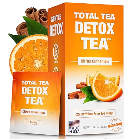 Thông tin sản phẩm Total Tea SIimming Detox Tea Caffeine Free - 25 Day Detox - Herbal Tea with Chamomile, Hibiscus Tea & Ginger Root for Colon Cleanse – Natural Citrus & Cinnamon Fruit Tea for Digestive Health