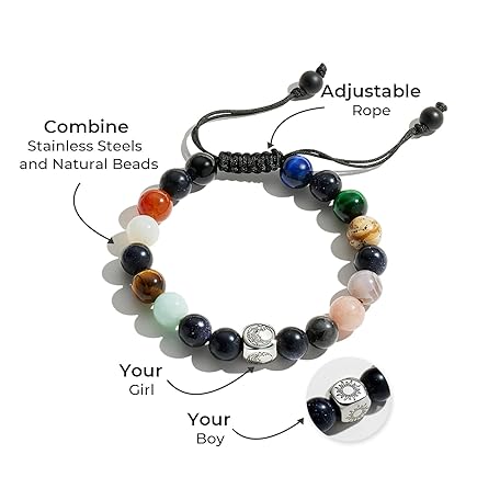 Thông tin sản phẩm TOTWOO Elegant Beaded Bracelets - Natural Stone & Stainless Steel Healing Energy Jewelry for Couple Lover, Adjustable Sun and Moon Non-Smart Bracelet Set with Positive Meaning, Perfect Friendship Gifts