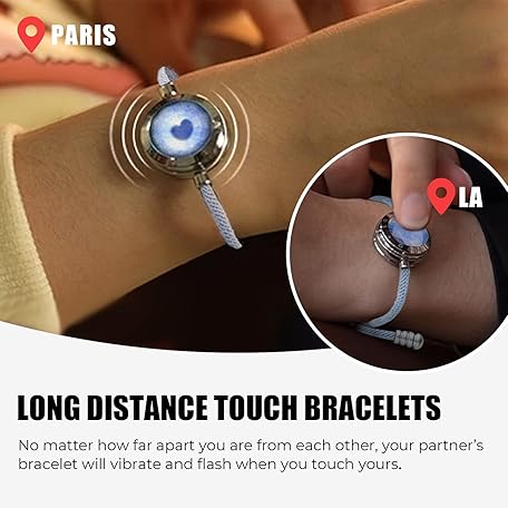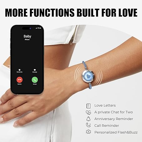 Thông tin sản phẩm TOTWOO Long Distance Touch Bracelets, Light up & Vibration for Love - Pair of Couples Bracelets Long Distance Relationship Gifts for Girlfriend, Mother-Daughter, Sisters, Women's Fashion Smart Jewelry, Bluetooth APP Set Up Pairing Jewelry