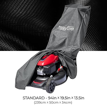Thông tin sản phẩm Tough Cover Universal Lawn Mower Cover - 600D Fabric, Black, Heavy Duty Waterproof Shield for Riding Models, Universal Fit for Zero Turn & Push Walk-Behind Units, Secure Drawstring for Mower Cover