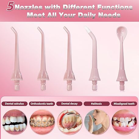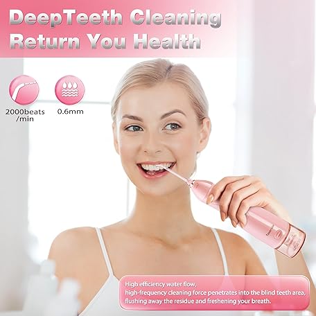 Thông tin sản phẩm Tovendor Electric Water Dental Flosser Teeth Pick, Cordless Flossers Oral Irrigator IPX7 Waterproof 300ML Rechargeable Travel Water Teeth Cleaner with 5 Tips for Home Braces Care Gums Deep Cleaning