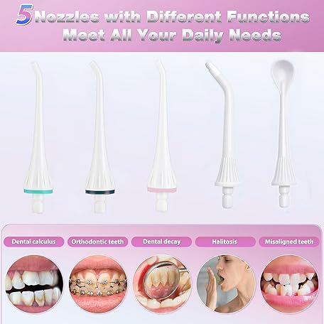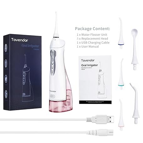 Thông tin sản phẩm TOVENDOR Electric Water Flosser, Cordless Rechargeable Dental Oral Irrigator IPX7 Waterproof 300ML Travel Water Teeth Cleaner with 5 Tips for Braces Care Teeth Gums Cleaning, Home Office Daily Use