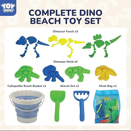 TOY Life TOY Life 30 Pcs Dinosaur Fossil Beach Toys for Kids Ages 4-8 Collapsible Sand Toys with Dinosaur Toys Silicone Bucket Shovels & Dino Digging Building Kit Molds, Sandbox Toy for Summer, Travel