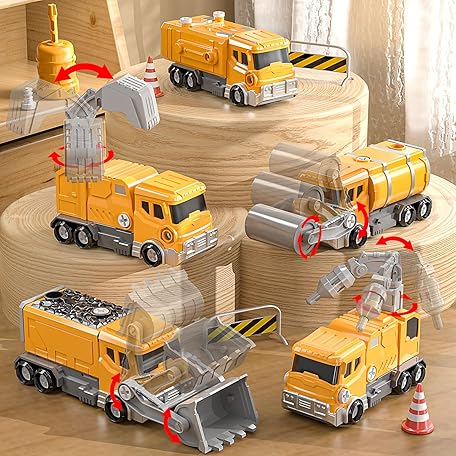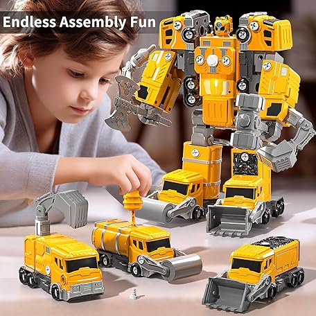Toys for Ages 5-7, 5-in-1 Take Apart Construction Vehicle Trucks Transform to Robot, 5 6 7 8 Year Old Boy Christmas Birthday Gift Ideas, Robot Toys for Kids 4-8