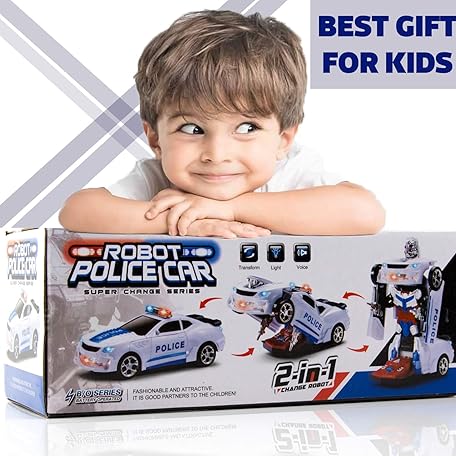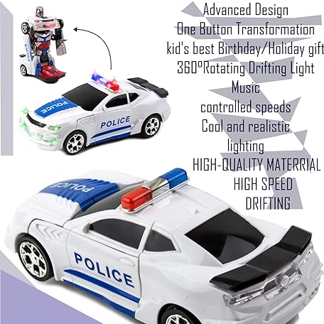 Thông tin sản phẩm Toysery Transforming Robot Police Car Toy with Lights - Smart Police Car to Robot Toy for Kids and Toddlers, Bump and Go Action, Perfect for Boys Ages 3-5