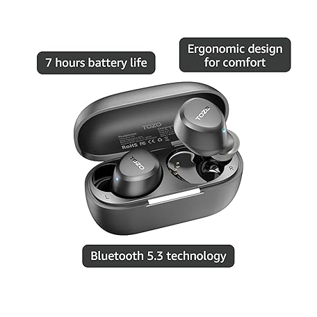 TOZO A1 Wireless Earbuds Bluetooth 5.3 Light Weight in Ear IPX5 Waterproof Headphones 2 Mic for AI Calls, Immersive Premium Sound Bass Headset with Charging Case, 32 Presets EQ Customization via App